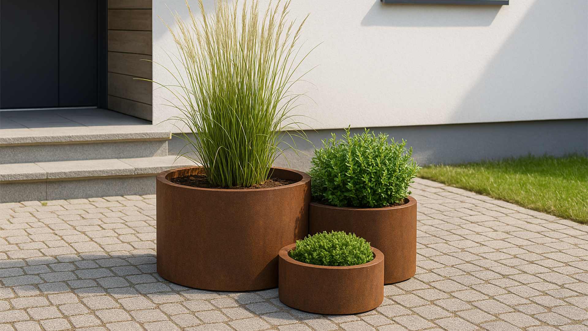 Donica corten Cesare 1 Set doskonale nadaje się do dużych roślin, drzew ozdobnych czy krzewów. Jej rozmiar i stabilność umożliwiają posadzenie roślin o rozbudowanym systemie korzeniowym. Dzięki odpowiednim otworom odpływowym rośliny będą miały optymalne warunki do rozwoju. Warto posadzić w niej rośliny wieloletnie, które będą się dobrze rozwijać w stabilnym środowisku.